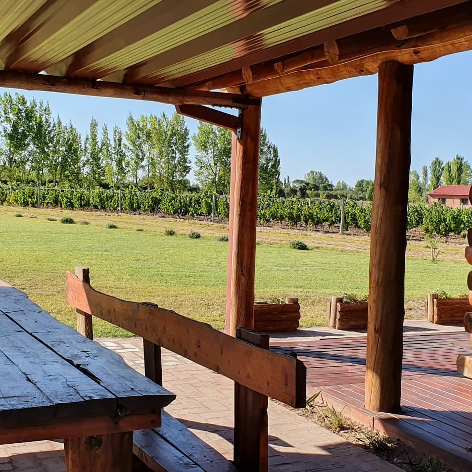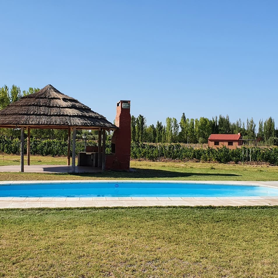 Viñedos Malbec, 1,5 ha frutales,1 ha terreno blanco para propias ideas, 1 ha parque del complejo con riego de aspersión.